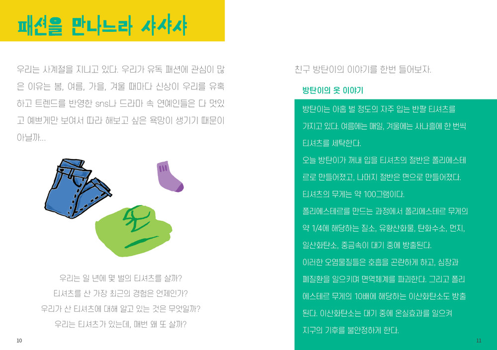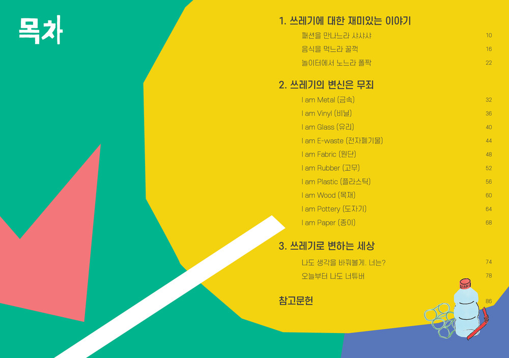 우리 생활 속에 발생하는 쓰레기를 의, 식, 주로 나눠 재미있는 쓰레기 이야기로 풀고, 10가지 소재로 쓰레기를 분류하여 보다 쉽고 재미있게 쓰레기에 대한 이해 할 수 있게 구성한 책입니다. 초등학생부터 청소년까지 쉽게 읽을 수 있습니다.