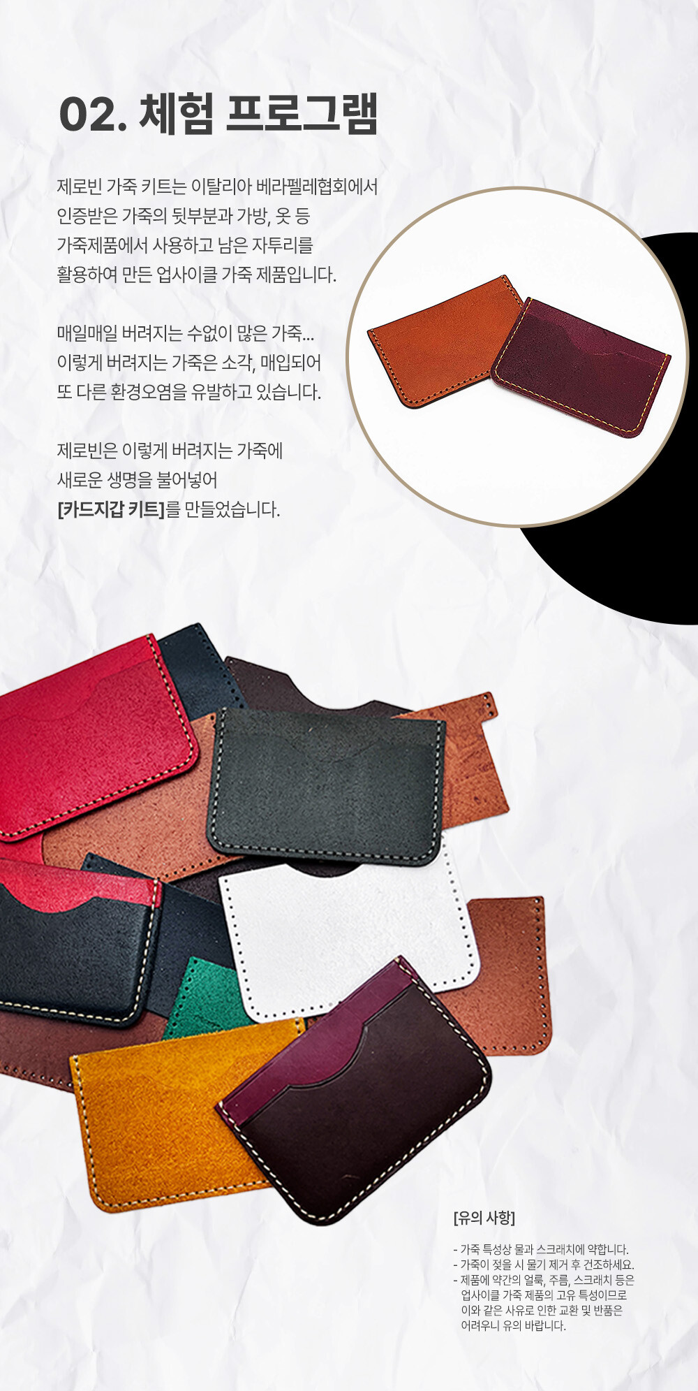 환경을 생각하며 집에서 쉽고 재미있게 가죽공예를 즐겨보세요! 제로빈 업사이클 가죽지갑 키트